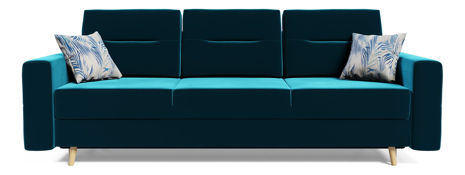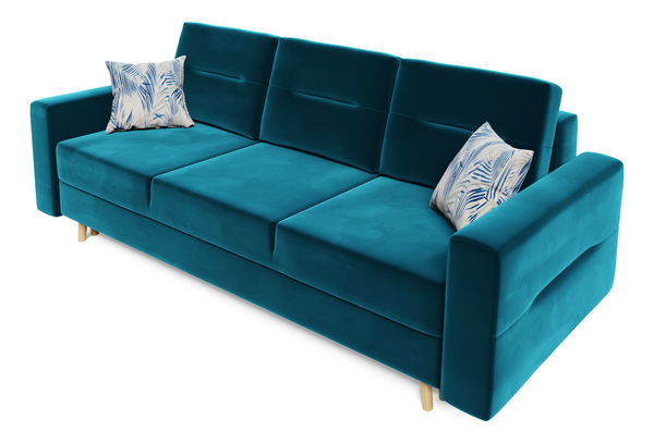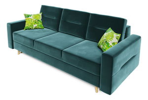 Rozkládací pohovka Bergenia (tyrkysová + polštáře Modré listy)