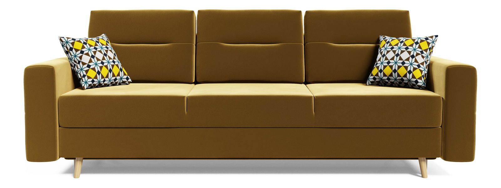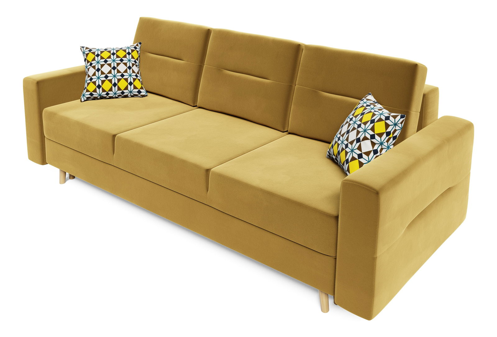 Rozkládací pohovka Bergenia v hořčicové barvě je ideálním řešením pro moderní obývací pokoje, stylové pracovny či útulné studentské pokoje. Její skandinávský design s čistými liniemi a dřevěnými nožičkami přináší do prostoru příjemnou atmosféru a lehkost. Díky rozkládacímu mechanismu automat jednoduše přeměníte pohovku na pohodlné lůžko o rozměrech 200 x 135 cm, což oceníte spaní.