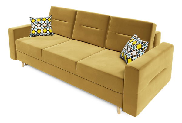 Rozkládací pohovka Bergenia (žlutá + vzorované polštáře)