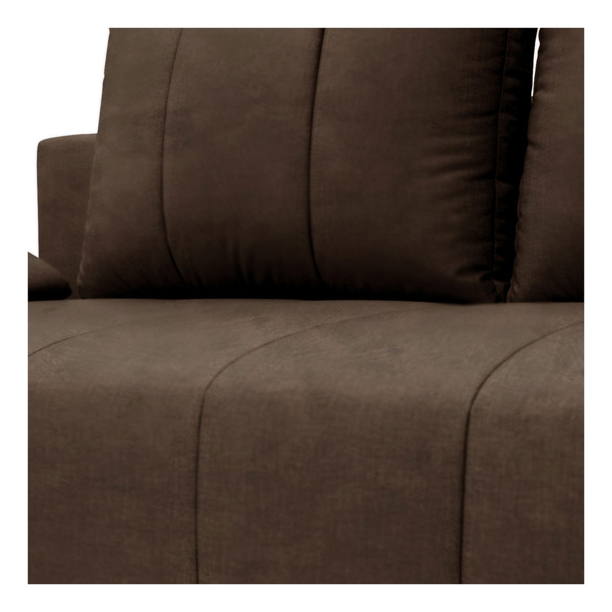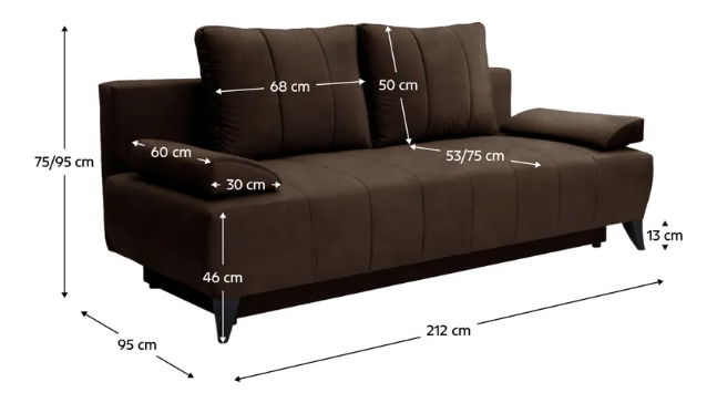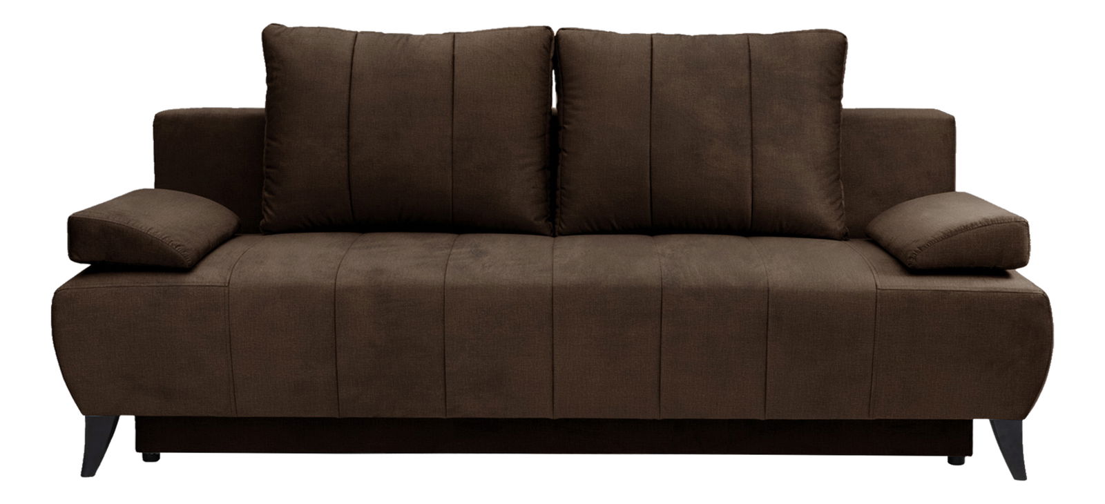 Pohovka Buno není jen hezká, ale také praktická. Je to přesně to, co jste hledali? Ideální do jakéhokoli stylu bydlení do malých, ale i prostorných místností. Její výhodou je funkce rozkladu, která zajistí dokonalý odpočinek nejen pro vás, ale také vaše hosty. Poskytne praktické lůžko o rozměru 212x140 cm. Disponuje úložným prostorem, který zajistí praktické skladování polštářů a dek. Tak bude vaše místnost vždy vkusně uklizená. Buno je celočalouněná, což vám umožní postavit ji i do středu místností. Na čalounění byla použita látka Kronos v hnědém barevném provedení. Na komfortu sezení a spaní se podepisuje výplň v podobě bonel s kombinací pur pěny. Pohovka je dodávána se dvěma malými polštáři, které poskytnou oporu pro ruce a dvěma velkými polštáři, které se naopak postarají o zrelaxování unavených zad. Postavena je na černých plastových nožičkách.