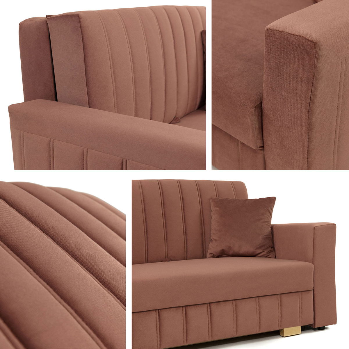 ZobrazitPohovka je ideální volbou pro ty, kteří hledají pohodlí a styl. Hledáte elegantní nábytek pro volný čas? Perfektně! Clivia Glam II pohovka má co nabídnout. Navzdory své malé velikosti poskytuje dostatek prostoru k odpočinku - během dne poskytne pohodlné místo pro nejméně dvě osoby, v noci se může změnit na pohodlné místo ke spaní. Je vybavena rozkládací funkcí, pod kterou je velký úložný prostor na ložní prádlo nebo jiné doplňky. Pohovka má charakteristický design – šití na opěradle, bočních a spodních prvcích jí dodává úžasné kouzlo a možnost výběru barev z nabídky, která je k dispozici v nabídce, umožní dokonalé přizpůsobení nábytku interiéru. Clivia Glam je volně stojící pohovka, jejíž zadní část je potažena látkou, díky které můžete pohovku umístit kdekoli v místnosti Rozměry: délka: 145 cm, šířka: 96 cm, výška: 83 cm, plocha na spaní: 195 x 115 cm Provedení: rám: borovice 42+ vlnová pružina, opěradlo: pěna T25/42, rozkládací pohovka má funkci spánku úložný prostor na ložní prádlo, automat pro snadné rozložení, nohy: dřevěné + plastové, čalouněné opěradlo pevně připevněné, polštář bez zipu v ceně, volně stojící pohovka (ča 109 cm, - šířka: 66 cm, - výška: 19 cm Záruka: 24 měsíců