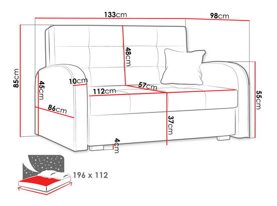 ZobrazitPohovka je ideální volbou pro ty, kteří hledají pohodlí a styl. V malém obývacím pokoji je pohovka Clivia Gold II perfektní. barva, která se dokonale hodí k interiéru, který si vyberete. Clivia Gold II patří do volně stojícího nábytku, díky čemuž můžete snadno zařídit interiér oddělením jednotlivých zón v místnosti nebo umístěním dokonce do středu místnosti. dřevotříska, sedák: pěna T25 / 42 + vlnová pružina, opěradlo: T25 / 42 pěna + deska HDF, rozkládací pohovka má funkci spánku úložný prostor na lůžkoviny, nohy: dřevěné, čalouněné opěradlo pevně připevněné, polštář bez zámku v ceně, volně u úložného prostoru: délka: 109 cm, šířka: 66 cm, výška: 19 cm Záruka: 24 měsíců