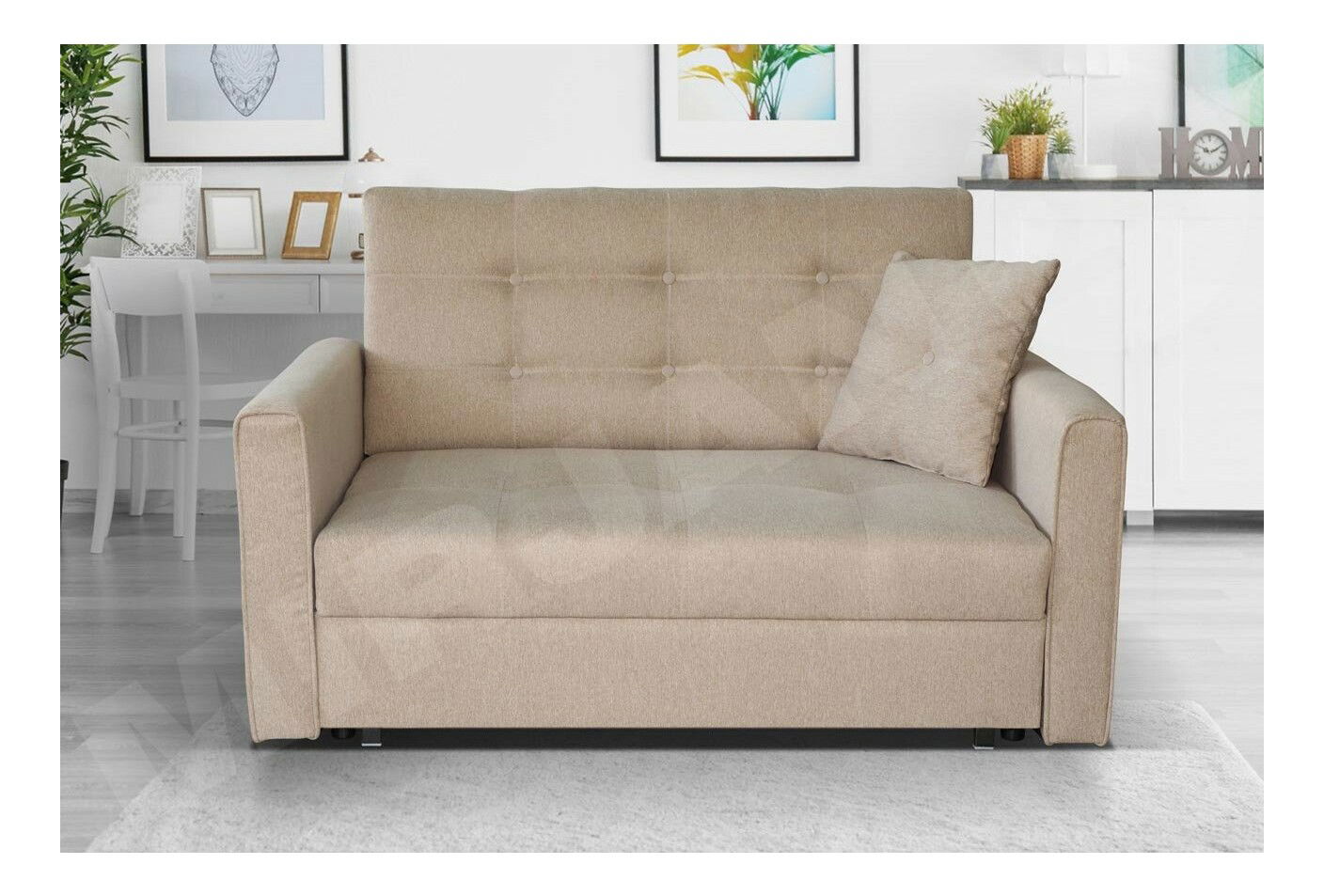 ZobrazitPůsobivá pohovka Phoenix s funkcí spánku se dokonale hodí jak k modernímu příslušenství, tak ik skandinávskému designu. Malá rozkládací pohovka může být použita jako pohodlná postel v pokoji pro dospívající nebo, jakož i další místo ke spaní pro hosty. Pohovka je vybavena praktickým úložným prostorem na ložní prádlo, které vám pomůže udržovat pořádek v obývacím pokoji. Polštář bez zipu v ceně.