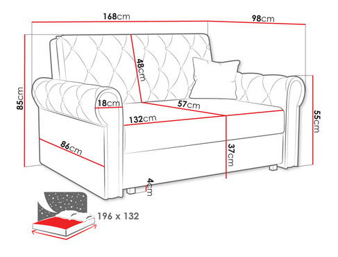 Rozkládací pohovka< >Vhodná pro spaní