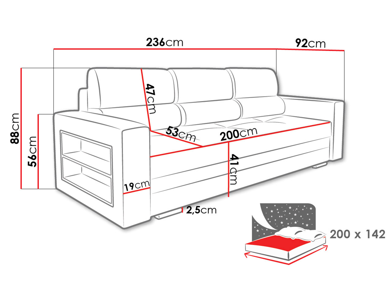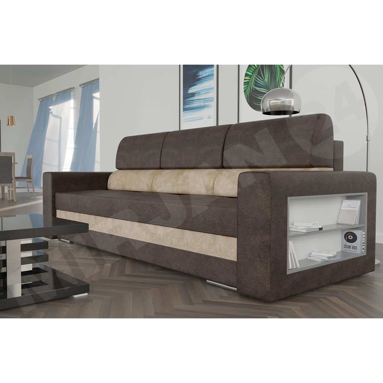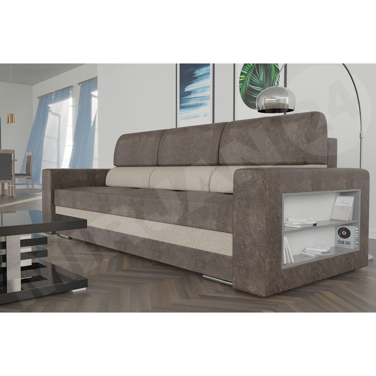 ZobrazitCarona je moderní pokojová rozkládací pohovka. Výborně se prezentuje v obývacím prostoru, pokoji pro mladé i v reprezentativním obývacím pokoji. Funkce spaní, kterou je pohovka vybavena, je ideální pro každodenní použití i jako další místo k přespání pro hosty. Pohovka se snadno rozkládá a má uvnitř úložný prostor. Za zmínku stojí zejména boční strany pohovky – na jedné z nich se nacházejí poličky na praktické příslušenství, které podporují pohodlí při odpočinku.