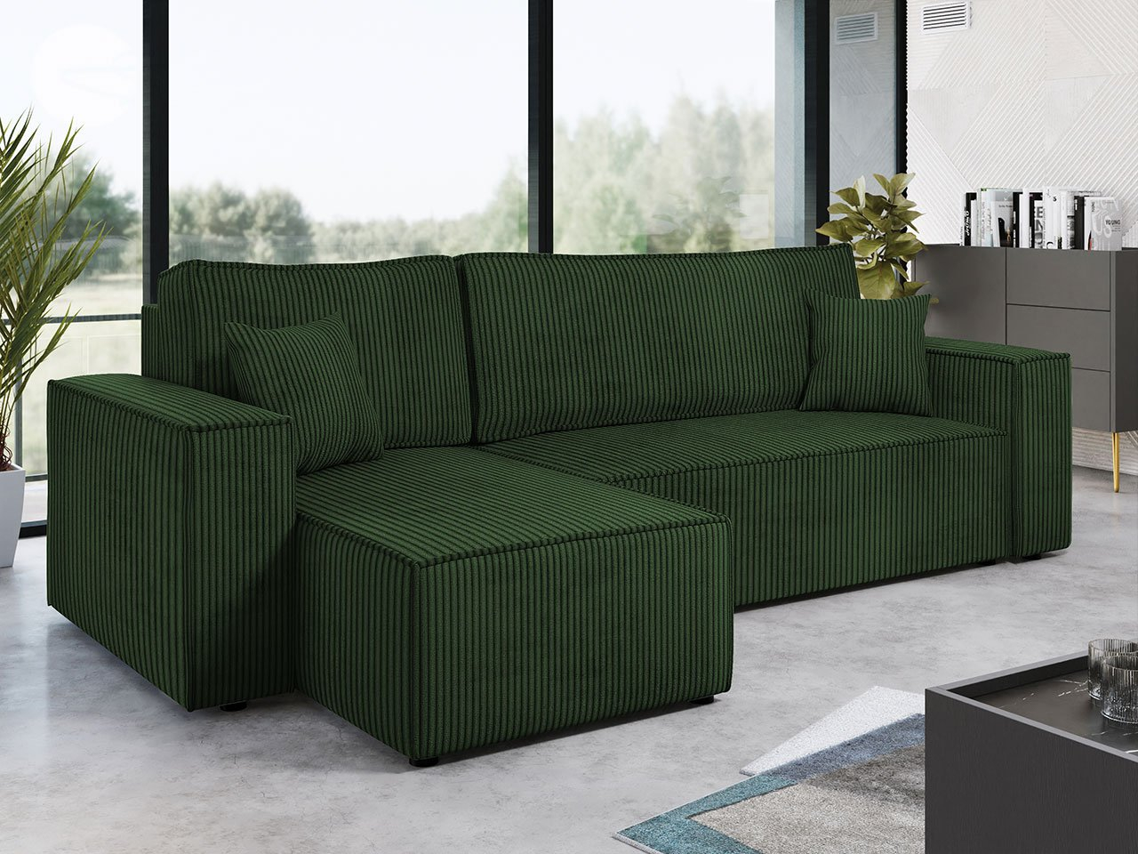 Rozkládací pohovka Kasuna Sztruks (tmavě zelená) (s úl. prostorem)