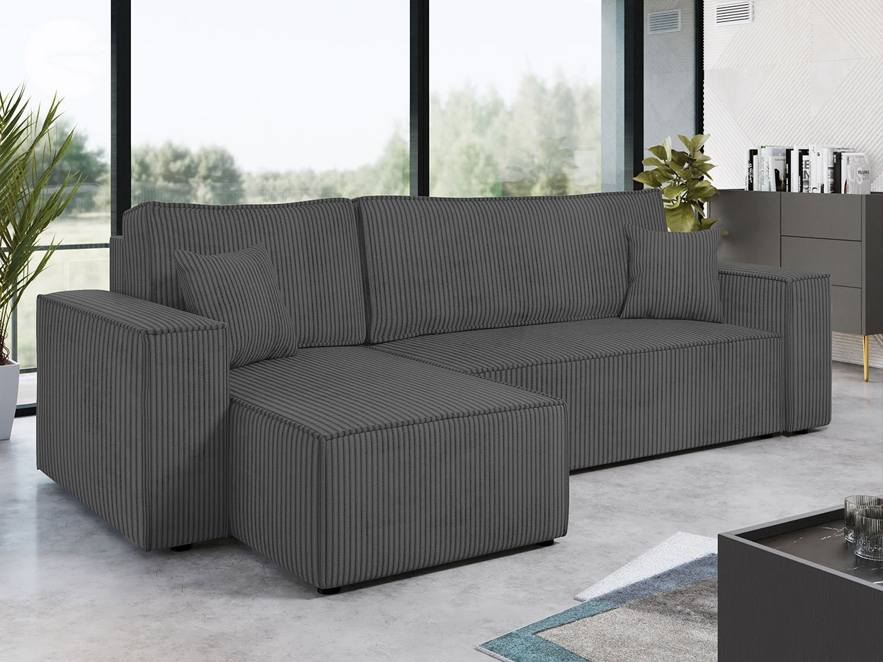 ZobrazitRozkládací pohovka Kasuna Sztruks vytváří trendy aranžování! Vyznačuje se jednoduchým minimalistickým stylem, který v kombinaci s pruhovanou látkou dodává obývacímu pokoji moderní akcent, dokonale ladící se současnými trendy interiérového designu. Konstrukce pohovky obsahuje dva úložné prostory na ložní prádlo, pohodlný sedák a opěradlo s pohyblivými polštáři. Bude vypadat perfektně iv malém obývacím pokoji. Funkce spánku vám umožní využívat pohovku nejen pro odpolední relax, ale také v noci. Pohovka do obývacího pokoje najde uplatnění iv pokoji pro hosty či dokonce teenagerském pokoji.