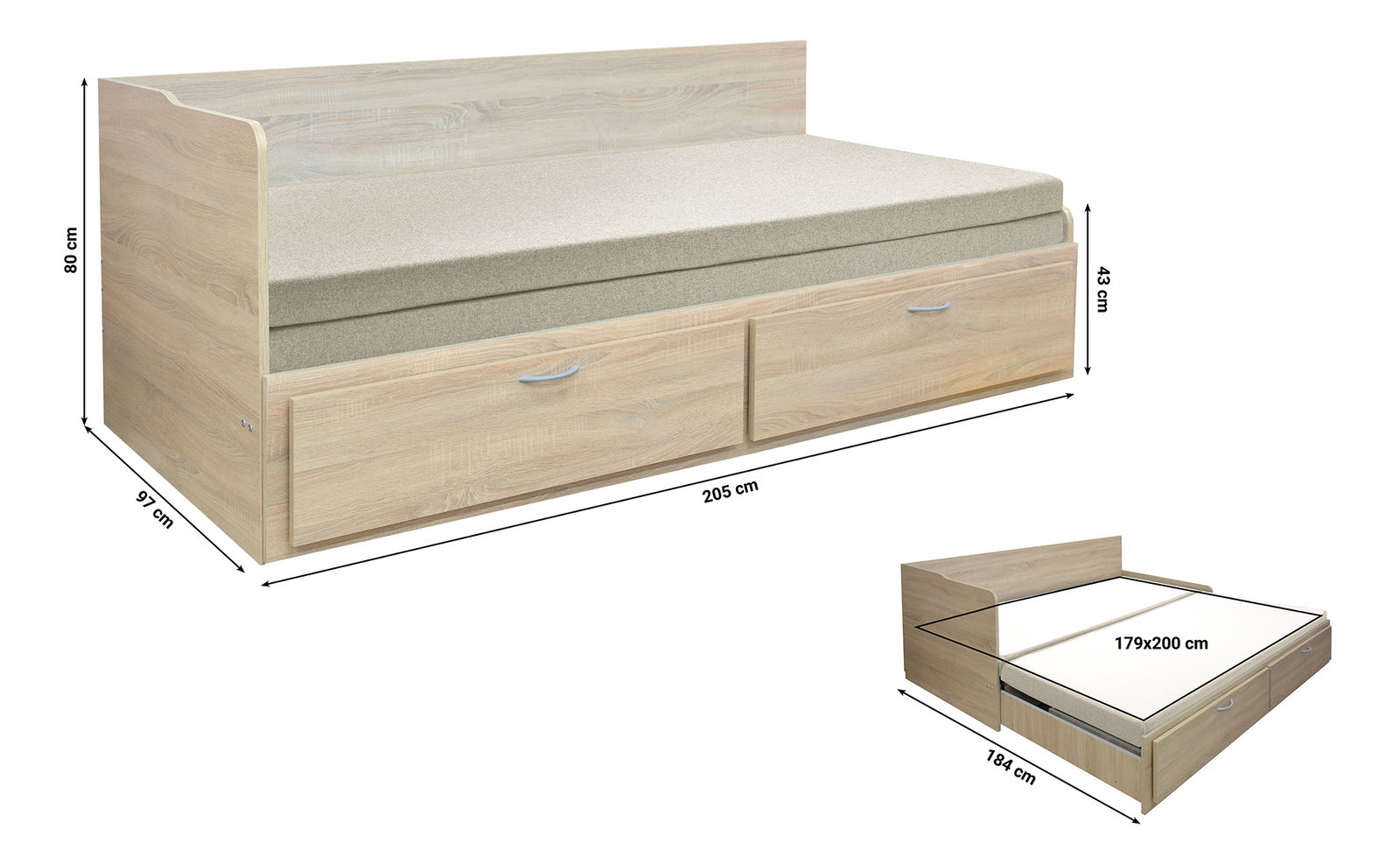 201x18x91 cm (VxŠxH) / 8 kg (Matrace)