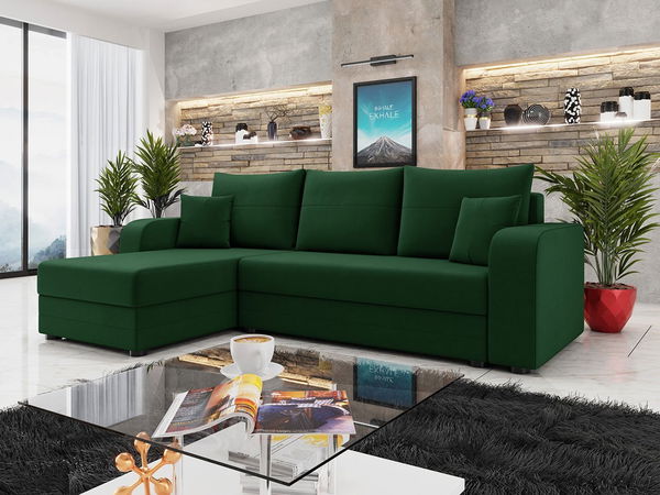 Rohová rozkládací pohovka Poruba Bis je model s jednoduchou a univerzální formou. O komfort při používání se starají pružiny a vrstva pevné pěny. V zadní části jsou pružné měkké pohodlné polštáře, které zajistí odpočinek po náročném dni. Na druhé straně jsou potahy polštářů opatřeny zipy, které umožňují jejich čištění. Po rozložení nabízí plochu na spaní 200 x 130. K dispozici nabízí Úložný prostor: kde můžete uložit náhradní ložní prádlo nebo přikrývky.