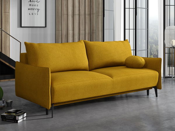 Rozkládací pohovka Owasoro (hořčicová) (s úl. prostorem)