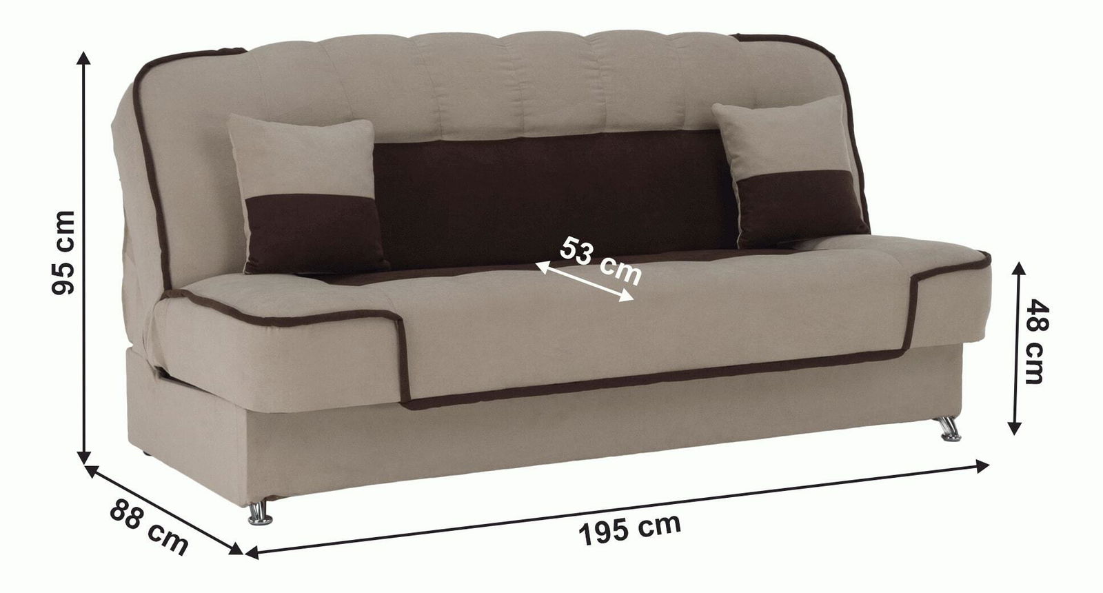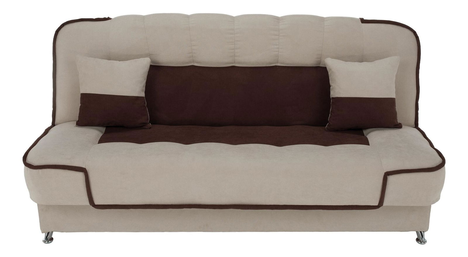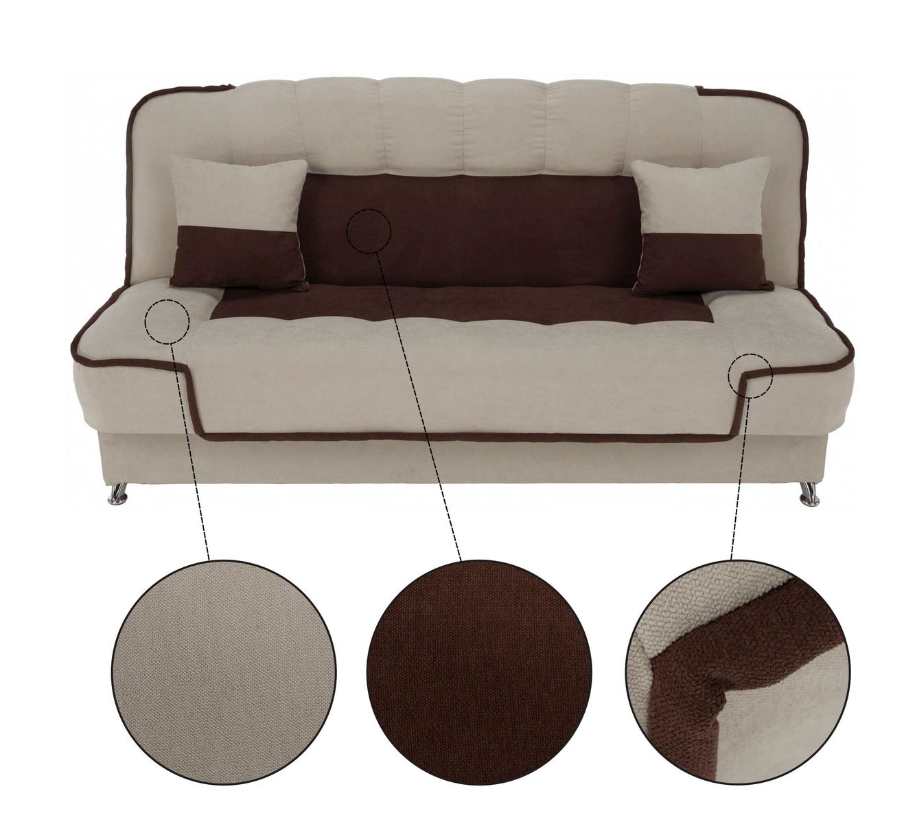 Pokud patříte k milovníkům nestárnoucí klasiky, pohovka Petras bude pro vás výzvou. Jednoduchá, ale stylová. Ideální do jakéhokoli interiéru. Petras je čalouněný látkou Soro v kombinaci béžové a hnědé. Pyšní se možností rozkladu, který můžete využívat nejen pro občasné spaní, ale i pro každodenní spaní. Plocha na spaní představuje rozměr 123x196 cm. O rozklad se poskládá funkce klik klak, která umožní nastavit opěradlo pohovky do svislé a vodorovné polohy. O vaše prádlo se s radostí postará prostorný úložný prostor. Komfort sezení a spaní zajišťuje bonelová pružina s pur pěnou. Petras je postavena na kovových nožičkách v chromovém provedení. Součástí pohovky jsou dva dekorativní polštářky.