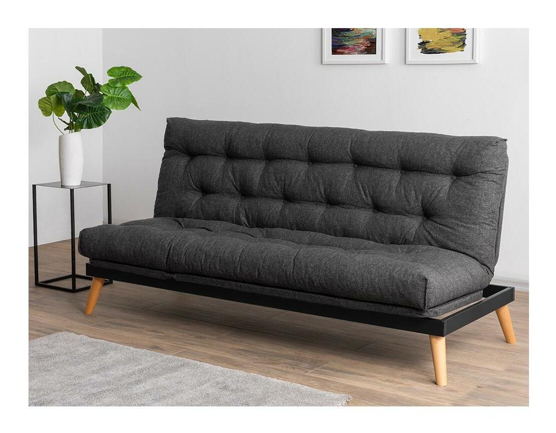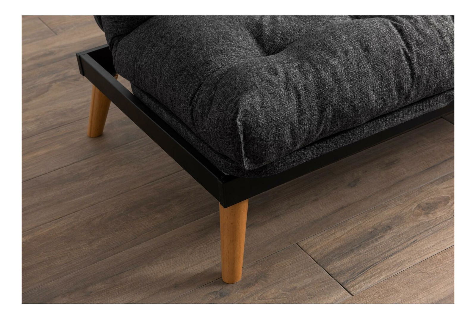 Rozkládací pohovka Sakotta (tmavě šedá + dřevo)
