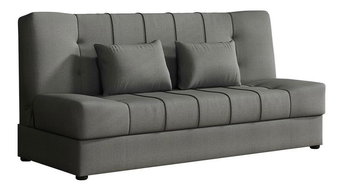 rám: borové dřevo + dřevotříska a MDF, sedák: T25 / 42 pěna + pružinová pružina, opěradlo: T25 / 42 pěna + pružinová pružina, rozkládací pohovka, má funkci spánku, kontejner na ložní prádlo, automatický rozklad, nohy: černý plast opěradlo pevně připevněno, pohovka není volně stojící (záda bez čalounění - černá podšívka)