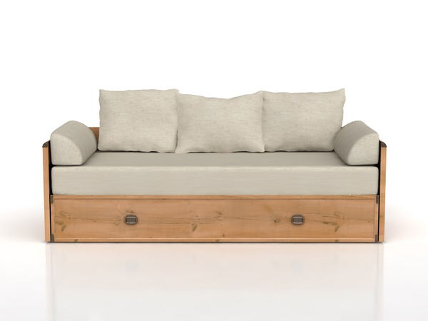 Rozkládací postel Indiana je sice určena zejména do studentských a dětských pokojů. Avšak již na první pohled zaujme masivnějším westernovým vzhledem s kovovými rohy a úchyty. Roztahovací postel se dá zároveň využít i jako pohodlný gauč v obývacím pokoji, či na víkendové chatě. Výsuvný úložný prostor využijete například pro uložení peřin.