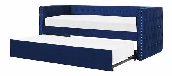 Doplňte svůj obývací, pokoj pro hosty nebo dětský pokoj funkčním, ale zároveň elegantním a stylovým kusem nábytku v podobě této elegantní rozkládací postele. Díky pevnému rámu z eukalyptového dřeva a lamelám z topolového dřeva nabízí stabilitu a odolnost po dlouhá léta. Na dotek jemné sametové čalounění je doplněno lemováním a ozdobnými knoflíky, které dodávají posteli elegantní vzhled.