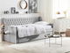 Tato rozkládací postel je skvělým doplňkem jakékoli místnosti zařízené v retro, glamour nebo tradičním stylu. Její pevný a odolný rám je čalouněný na dotek jemným sametem, který jí dodává prvotřídní a elegantní vzhled. Nízké boční opěrky a prošívané čalouněné opěradlo zvýrazňují klasický design tohoto kusu nábytku. Postel se dvěma lamelovými rošty je zárukou zdravého a nerušeného spánku.