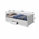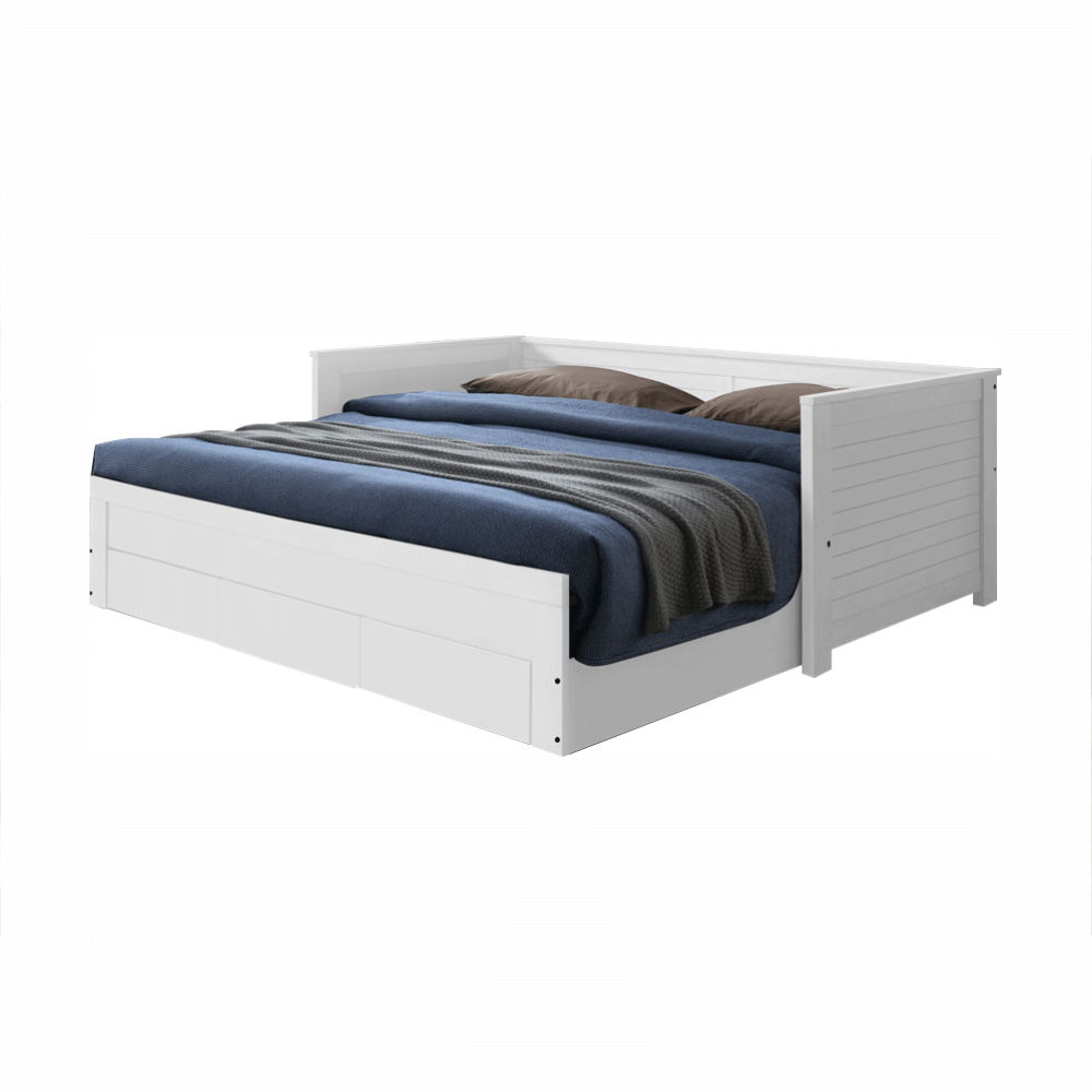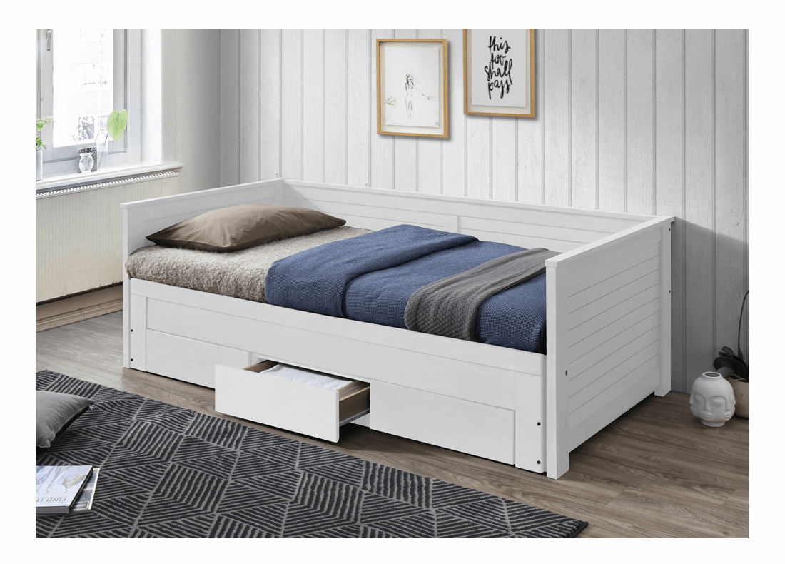 Vysouvací konstrukce na kolečkáchDodávané s 2 laťkovými rošty, s boční zástěnou, s 3 zásuvkami. dodávané bez matrace. Možnost zakoupit matraci z naší nabídky. Dodávané v demonte.
