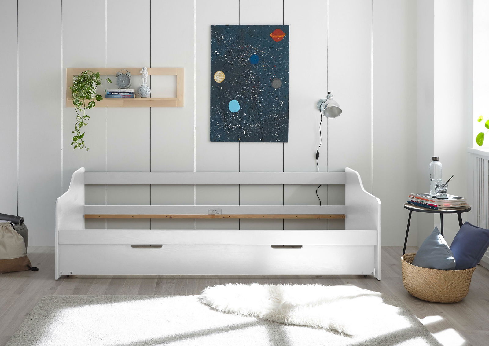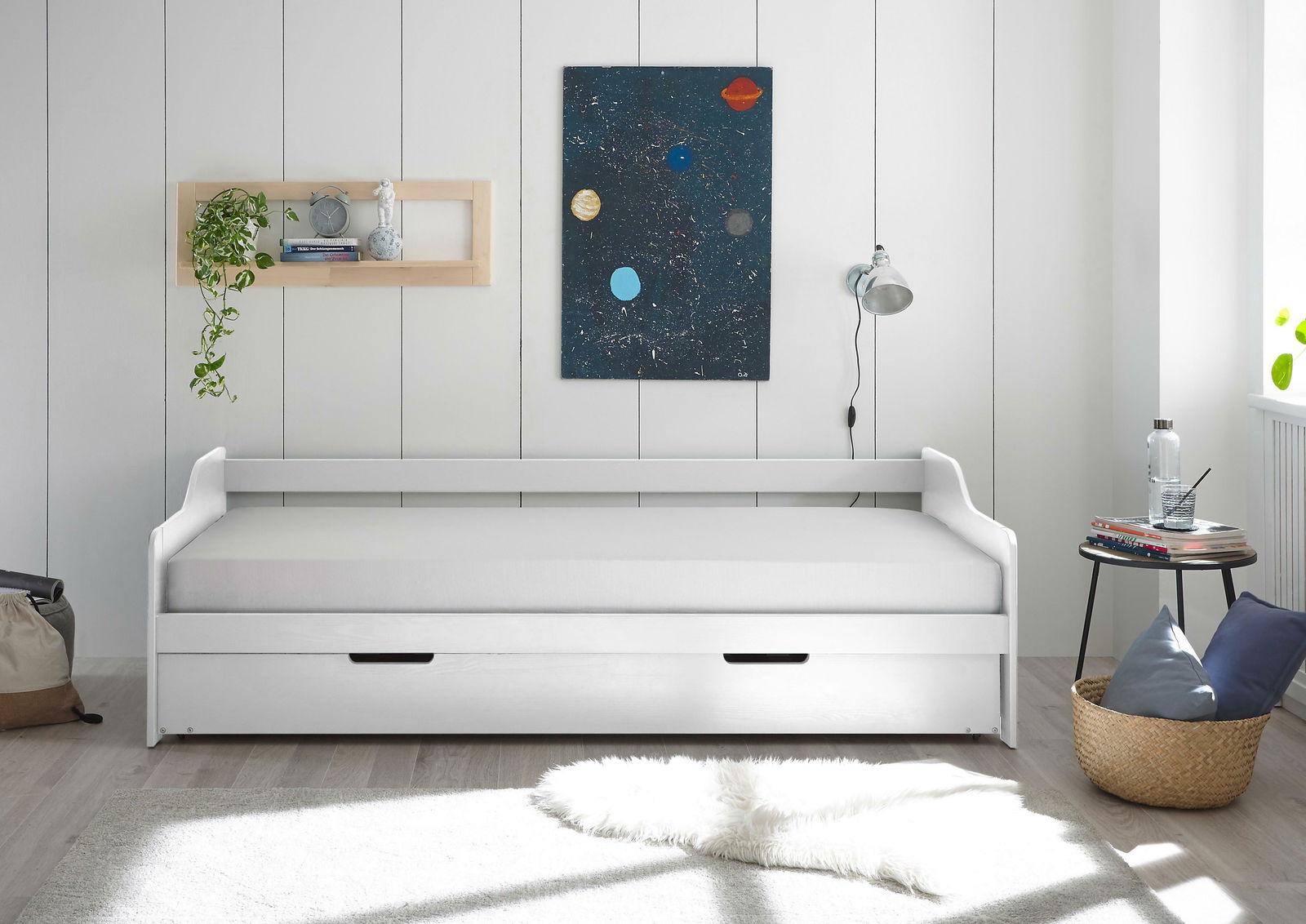 ZobrazitRozkládací postel Jadis v barevném provedení borovice bílá je moderní a univerzální kus nábytku, který poskytne Vaší ložnici či dětskému pokoji až 2 pohodlná lůžka. Vyrobená je z masivního borového dřeva v kombinaci s deskou MDF. Svým moderním designem zapadne do jakéhokoli interiéru a bude výborným místem k odpočinku. Její 2 ložné plochy mají rozměry 90x200 cm a součástí balení je také rolovatelný rošt. Matrace nejsou součástí balení. Její odolnost a stabilitu zaručují nohy a bočnice o průměru 1,8 cm a její čelo má tloušťku 1,8 cm. Rozkládací postel Jadis čeká na příležitost sloužit vám jako nekonečný zdroj odpočinku a relaxu!