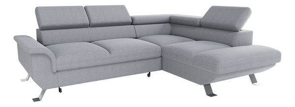 Rozkládací, Rohová, S úložným prostorem v otomanu, Dekorativní prošití, Pružinová výplň, 3 polohovací opěrky hlavy, Na kovových nožičkách, Celočalouněná, Pravé provedení