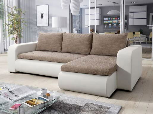 Na plastových nožičkách, Dodávána se třemi polštáři, Rozkládací, Rohová, Celočalouněná, S úložným prostorem, Pravé provedení
