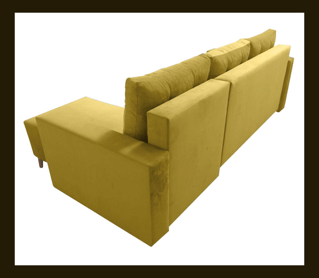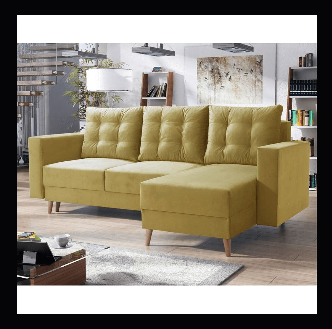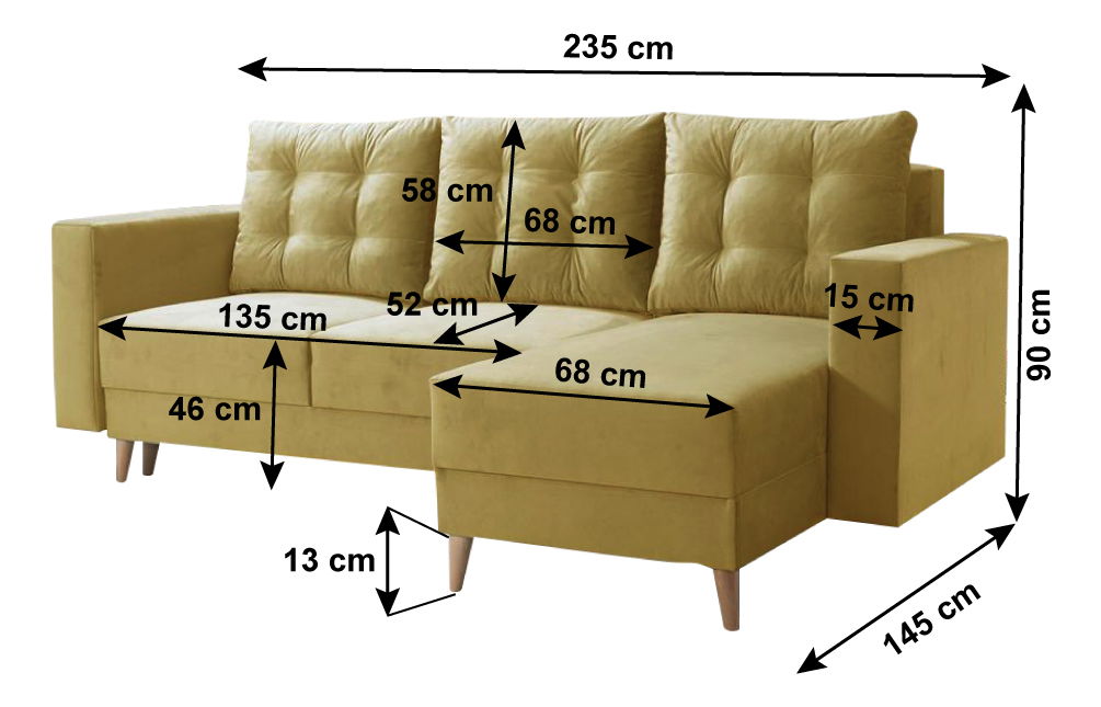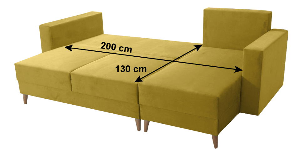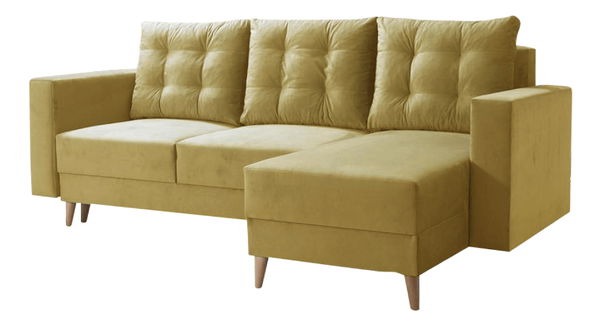 Na dřevěných nožičkách, Dodávána se třemi polštáři, Rozkládací, Rohová, Celočalouněná, S úložným prostorem, Levé provedení