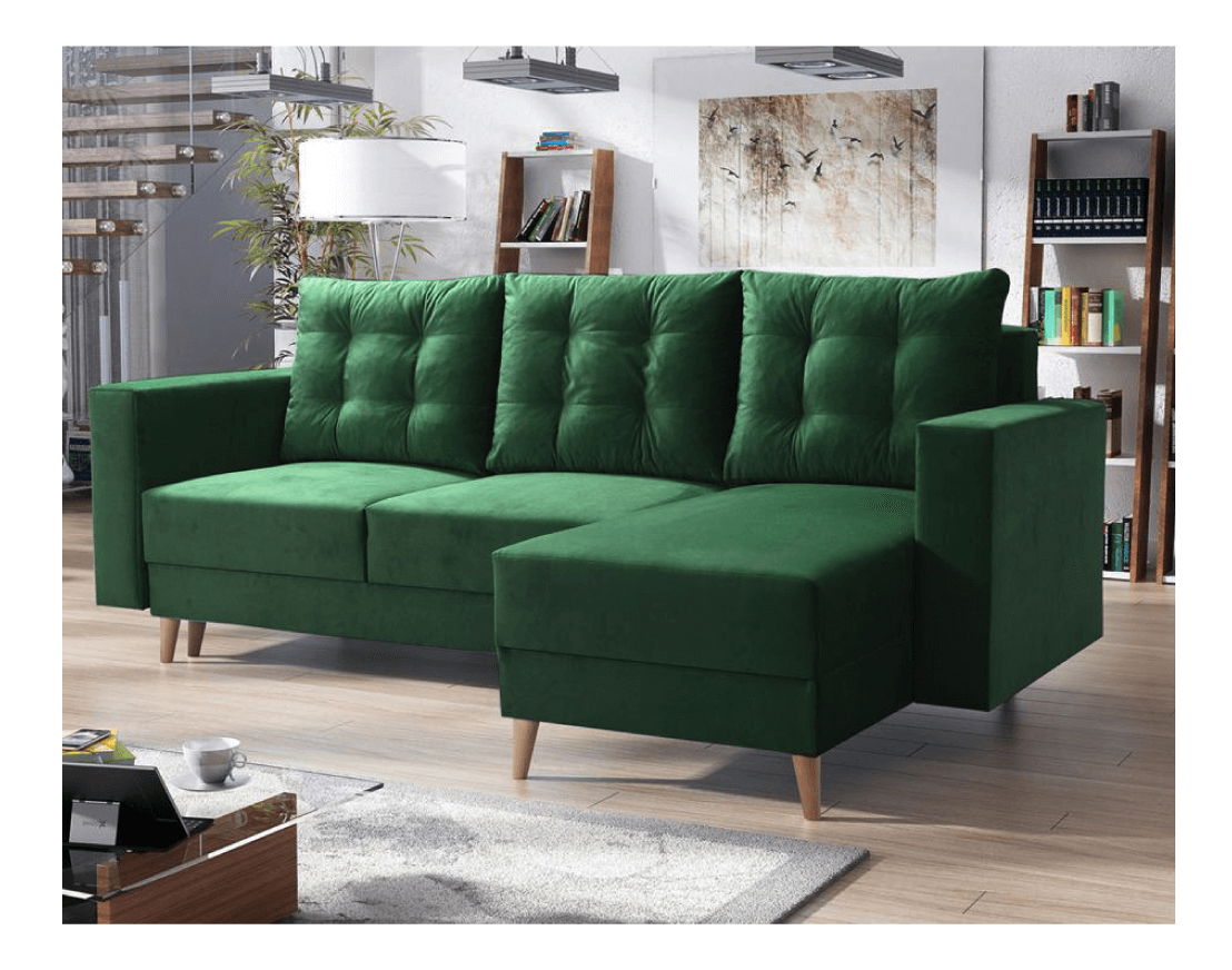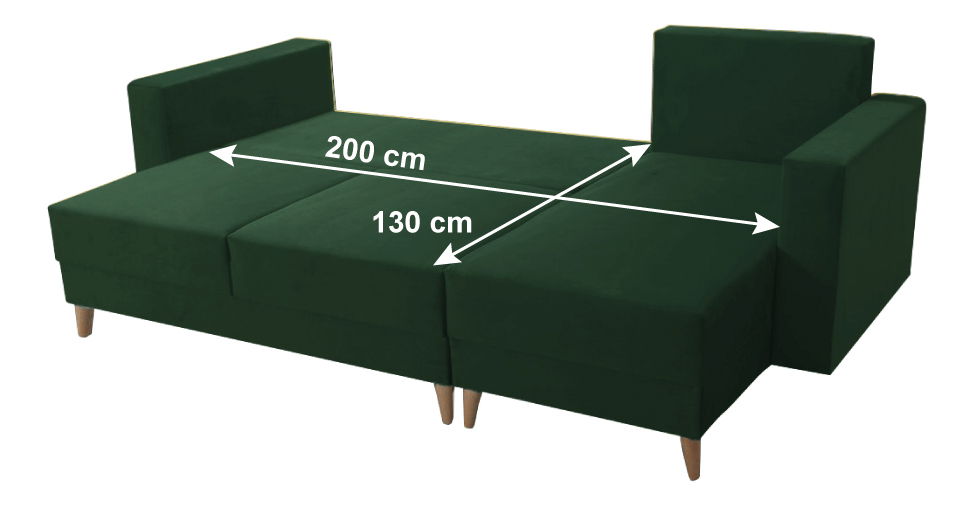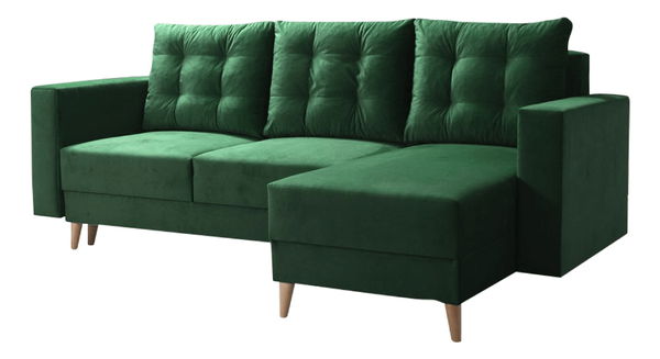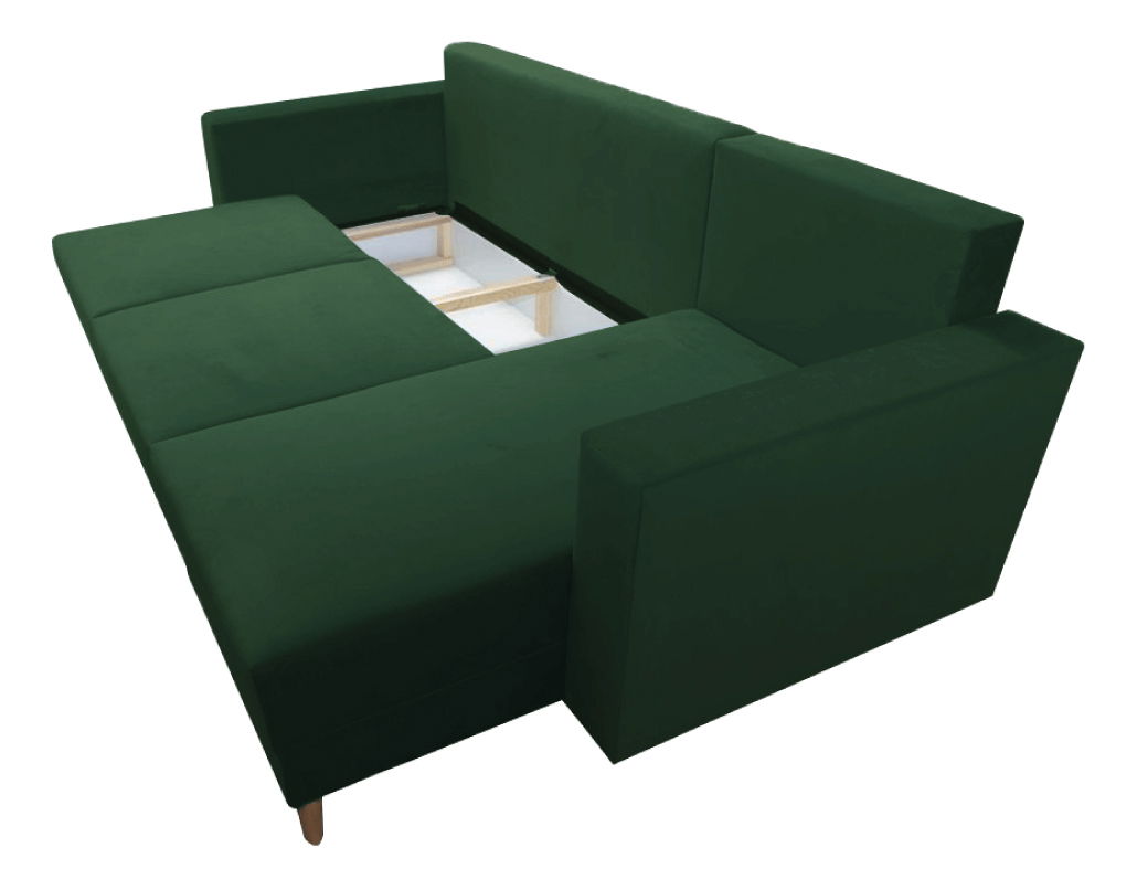Na dřevěných nožičkách, Dodávána se třemi polštáři, Rozkládací, Rohová, Celočalouněná, S úložným prostorem, Levé provedení