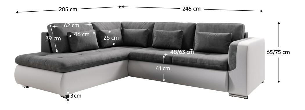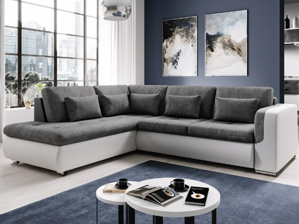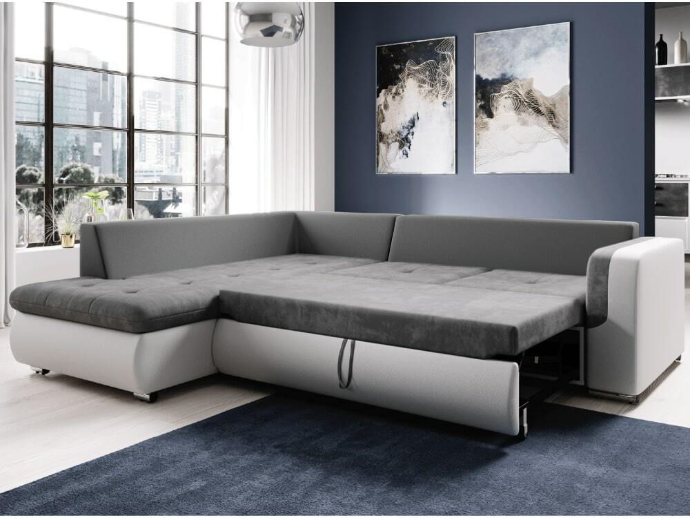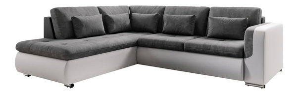 Pohodlnou a zároveň trendovou sedací soupravou je Foldo L ROH. Celočalouněná s možností umístění kdekoli v interiéru. Kombinace bílé ekokůže a šedé látky Seal zvýrazňuje zaoblené tvary sedáku i boční opěrku rukou. O příležitostné spaní se postará její rozklad o rozměru 135x205 cm. Výplň sedací soupravy představuje pružina falista kombinovaná s pur pěnou. Postavena je na plastových nožičkách ve stříbrné barvě. Dodávána je s 5 velkými a 5 malými dekorativními polštářky.