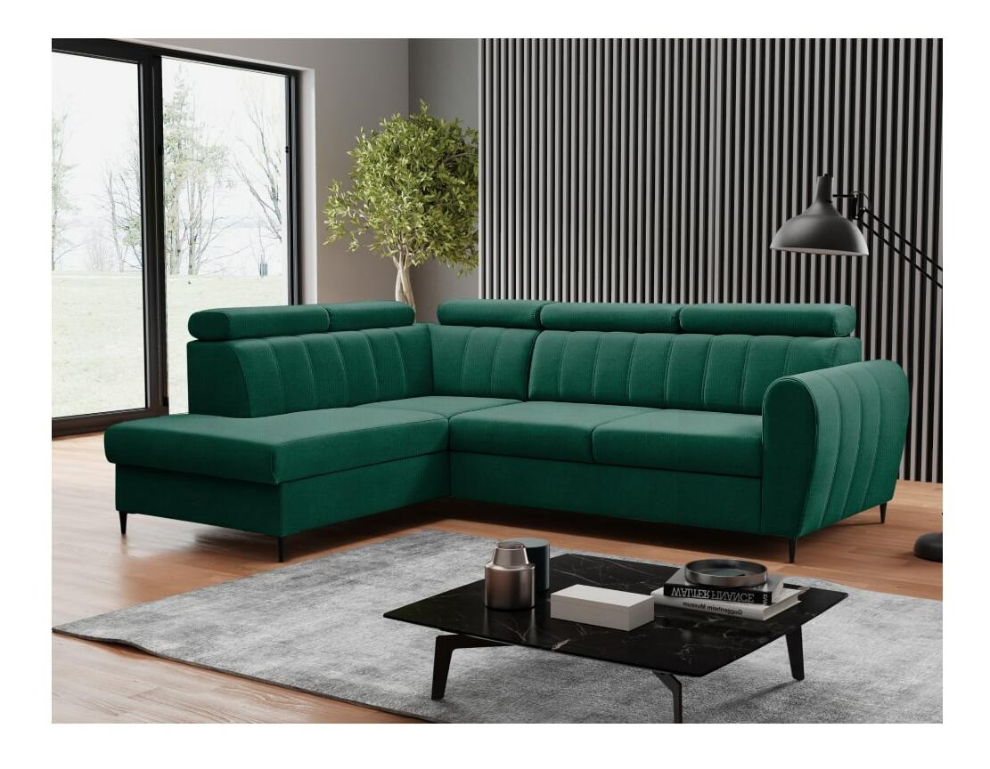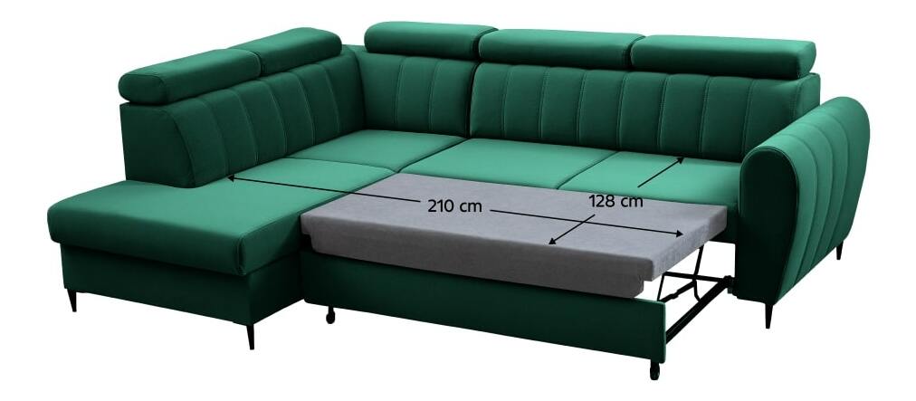 Na nožičkách, Rozkládací, Rohová, Celočalouněná, Levé provedení, S úložným prostorem, Polohovací opěrky hlavy