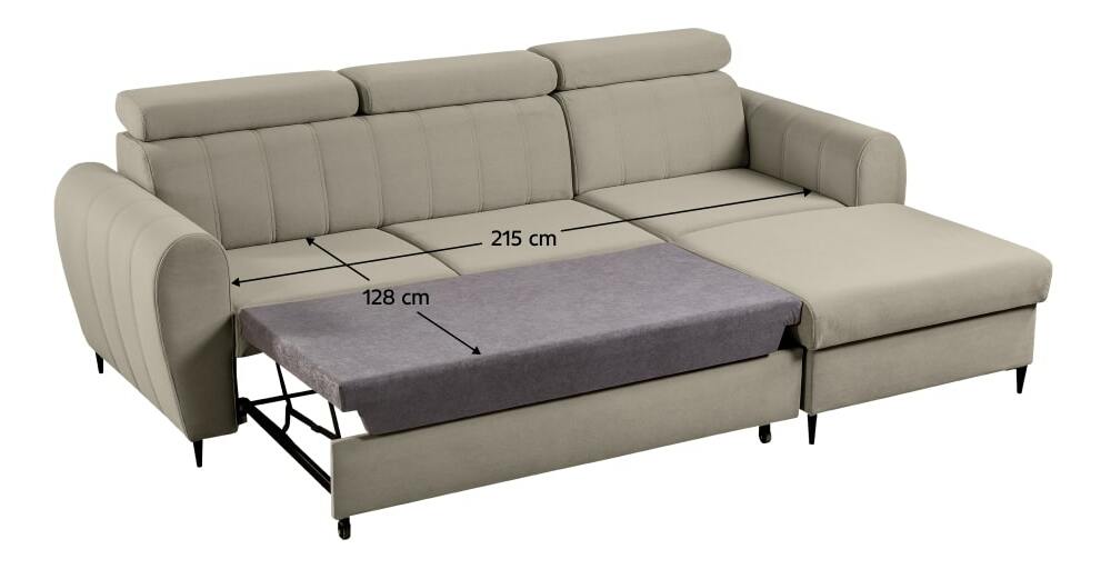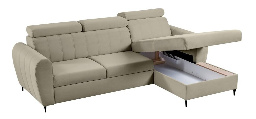 Na nožičkách, Rozkládací, Rohová, Celočalouněná, Pravé provedení, S úložným prostorem, 3 polohovací opěrky hlavy, 6 stupňové polohování opěrek