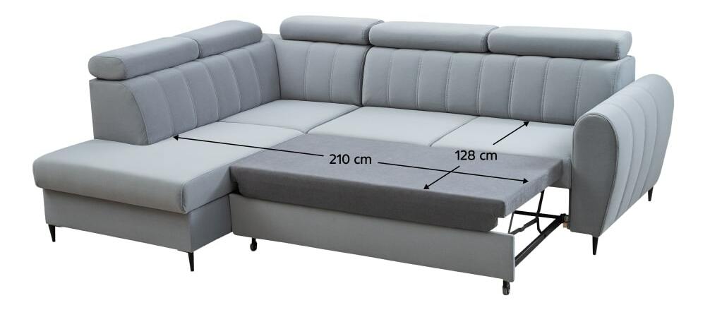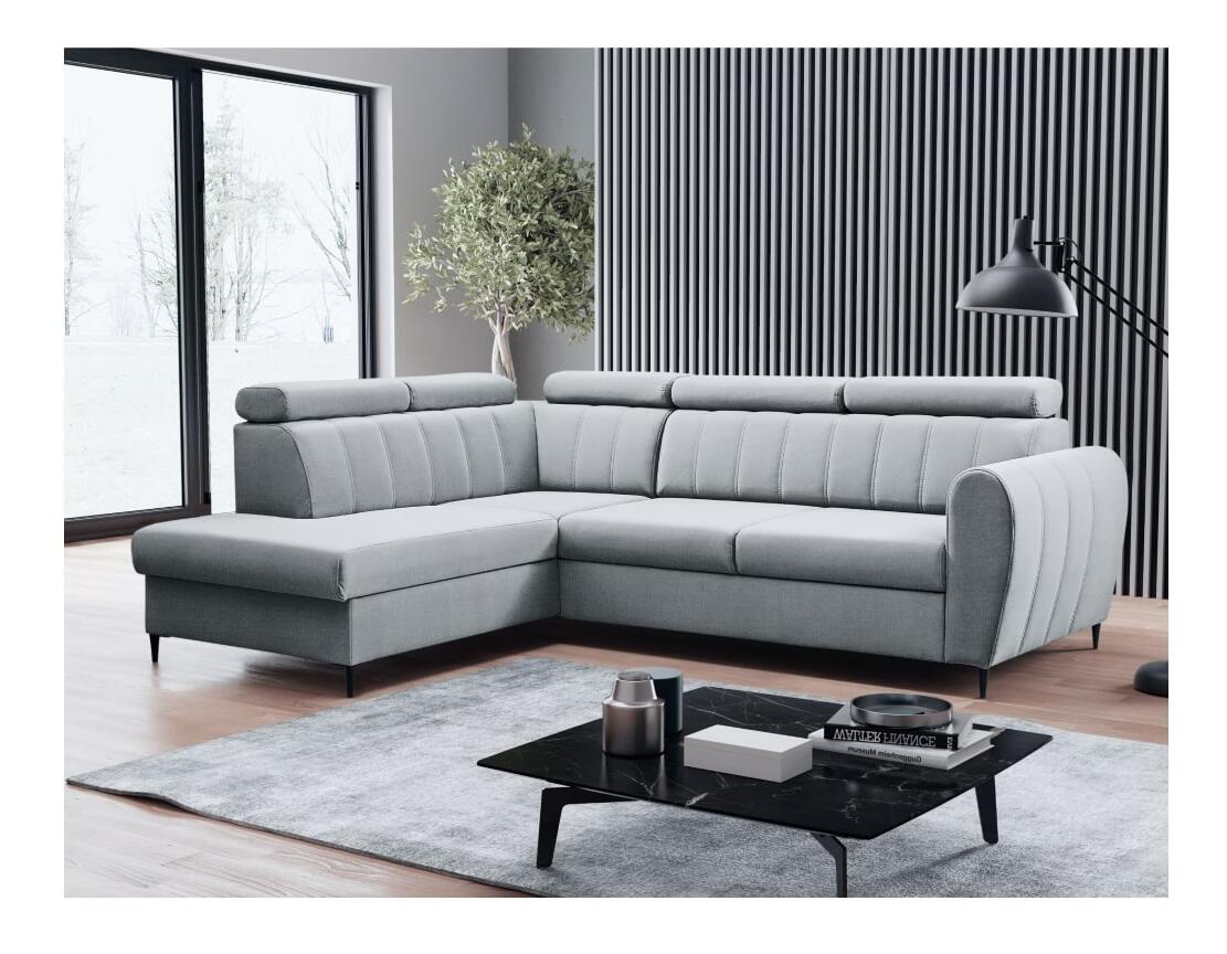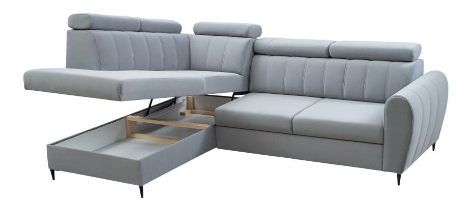Na nožičkách, Rozkládací, Rohová, Celočalouněná, Levé provedení, S úložným prostorem, Polohovací opěrky hlavy