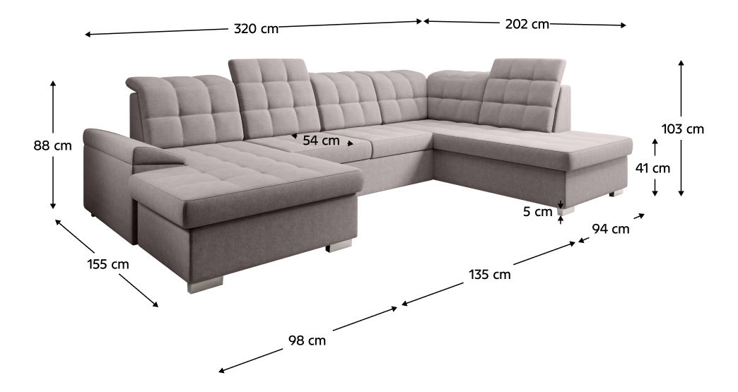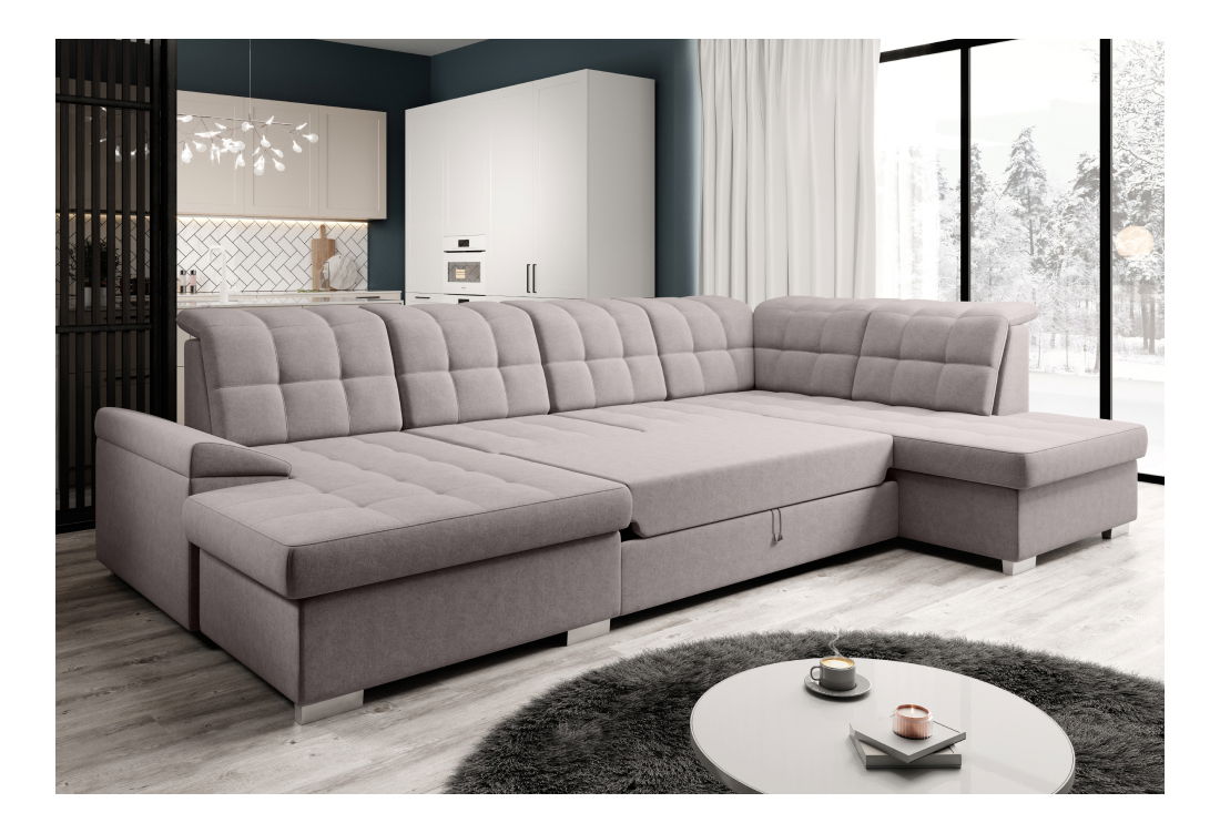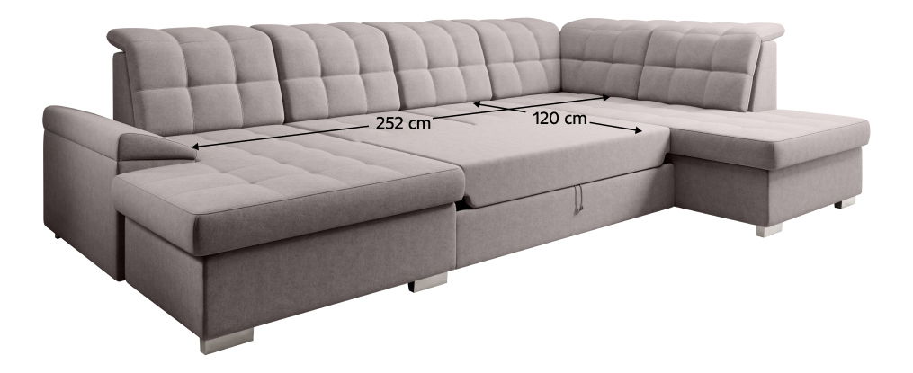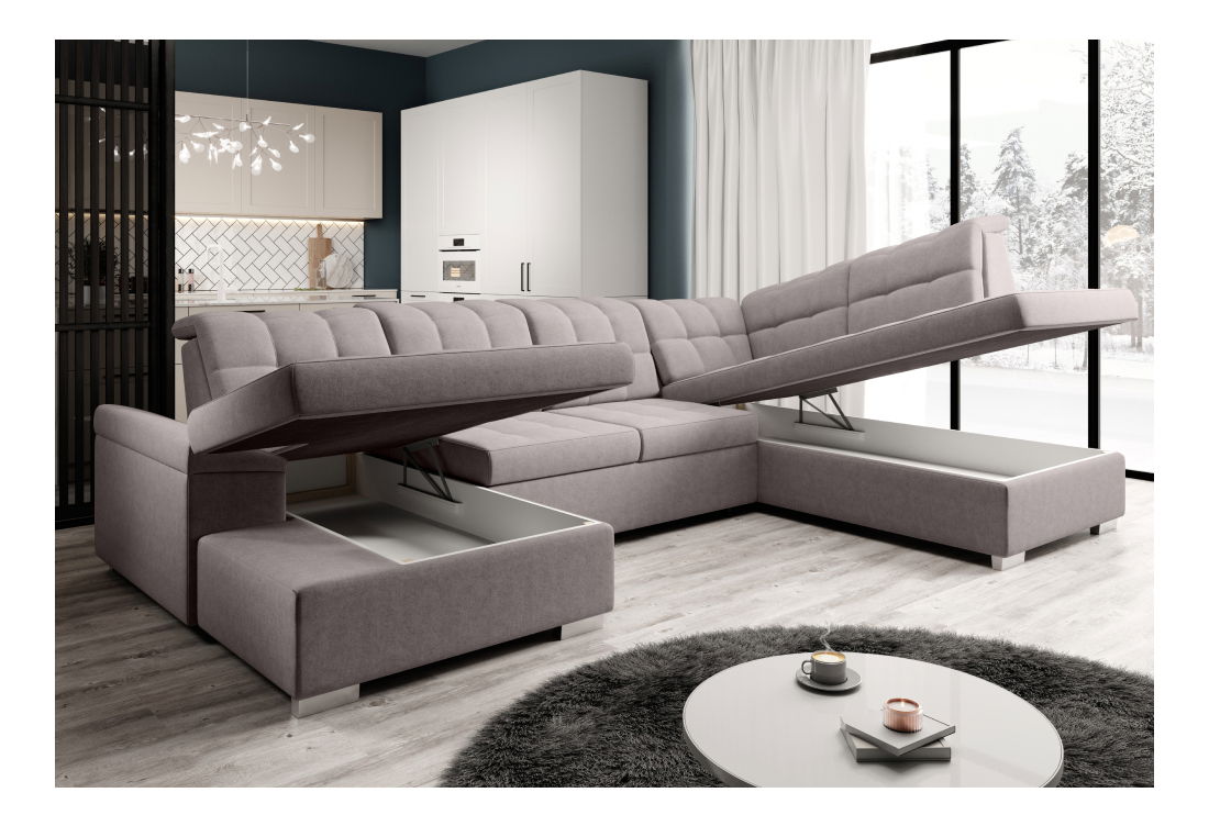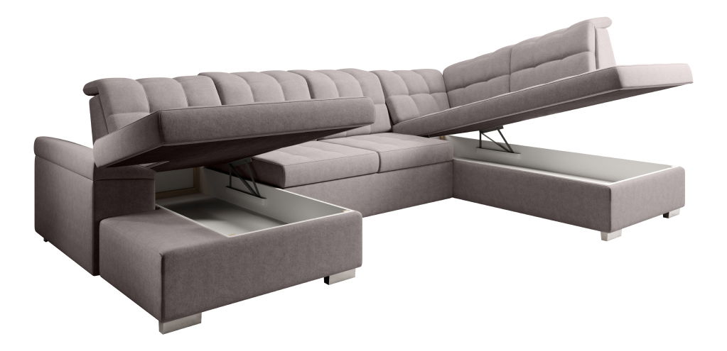 Na nožičkách, Rozkládací, Rohová, Celočalouněná, Tvar U, Se dvěma úložnými prostory, Polohovací opěrky hlavy, Pravé provedení