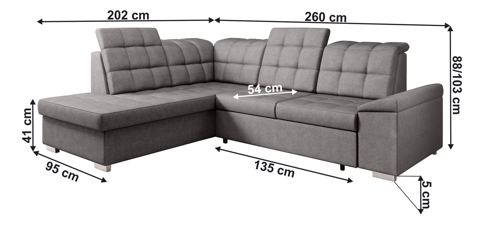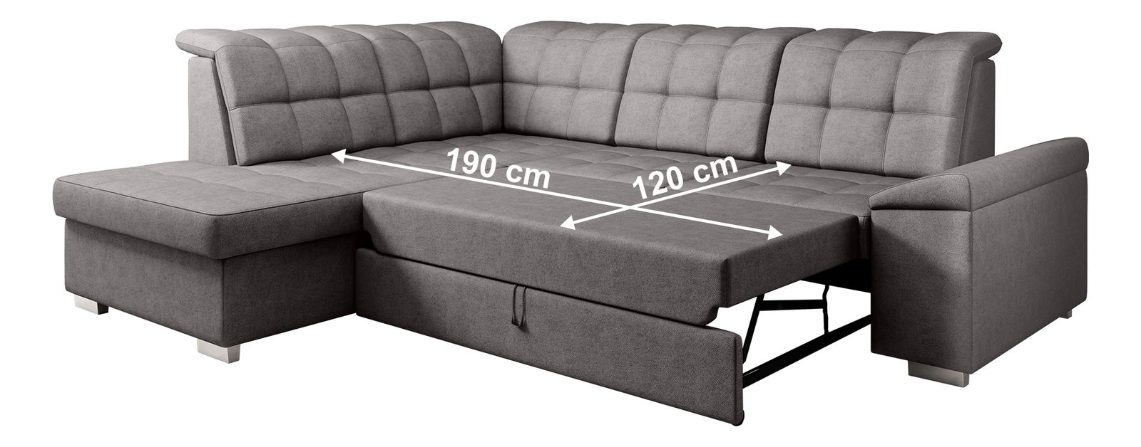 Na nožičkách, Rozkládací, Rohová, Celočalouněná, S úložným prostorem, Polohovací opěrky hlavy, Levé provedení