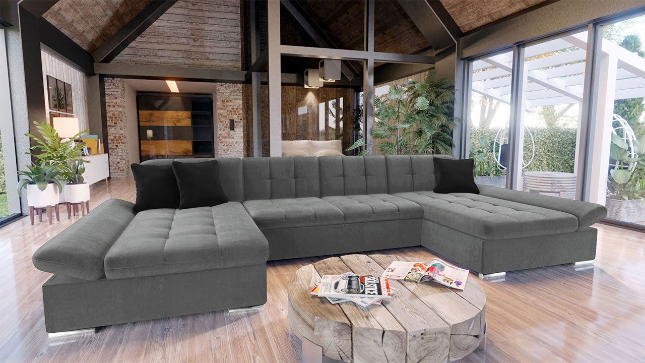 ZobrazitRohová pohovka Agnara s funkcí spaní tato očekávání splňuje. Tato moderní rohová pohovka jistě osloví milovníky netradiční elegance ve skutečně hollywoodském stylu. Její zajímavá forma osvěží zařízení interiéru a zajistí, aby si celý obývací pokoj zachoval jednotný styl. Rohová pohovka typu „U“ zaručuje pocit pohodlí, komfortu a relaxu během rodinného volného času i během setkání s přáteli. Takový tvar prostě musí být v interiéru vystaven! Prostorná rohová pohovka zaujme každého v domě. Bude také skvělým prostorem pro dětské hry – vaše děti si mohou postavit domeček z přiložených polštářů, zatímco vy si budete užívat nerušeného odpočinku ve druhé části nábytku a zároveň dohlížet na jejich bezpečnost. Čalouněné opěradlo je pevně připevněno. Nastavitelné područky vám usnadní nastavení nejpohodlnější opory. Konstrukce sedáku bude mít zase pozitivní vliv na vyrovnání jednotlivých segmentů páteře, čímž vám poskytne zdravé podmínky pro relaxaci. Po rozložení dosahuje rohová sedačka s funkcí spaní nadprůměrné plochy na spaní, která vám poskytne každodenní komfort a vašim hostům pohodlný spánek. Díky dvěma kontejnerům na lůžkoviny získáte další, diskrétní úložný prostor pro sezónní oblečení a vzácně používané doplňky. Měkké tvary rohové pohovky se nabízí v pozoruhodných barvách. Široký výběr barev umožňuje snadno zvýraznit kvalitu vašeho interiéru. Zadní část čalouněná látkou vám navíc dává možnost umístit nábytek libovolným způsobem – i v centrální části obývacího pokoje bude vypadat velmi dobře. Chromované přední nohy dodávají nábytku jemný šarm a zároveň dodávají zařízení jemný nádech modernosti.