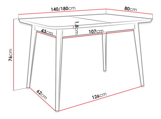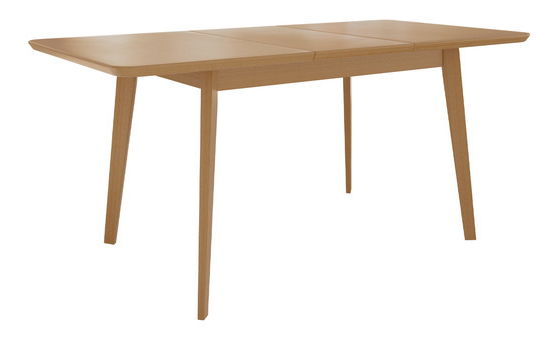 horní část: 18 mm MDF deska s bukovou dýhou, nohy: bukový kužel, vložka pro skládání stolu se nachází pod horní deskou, barvení podstavců: vodní mořidlo + 2x vodní lak, vrchní barva: nitro lazura + 2x PU lak, nohy je třeba přišroubovat k desce stolu