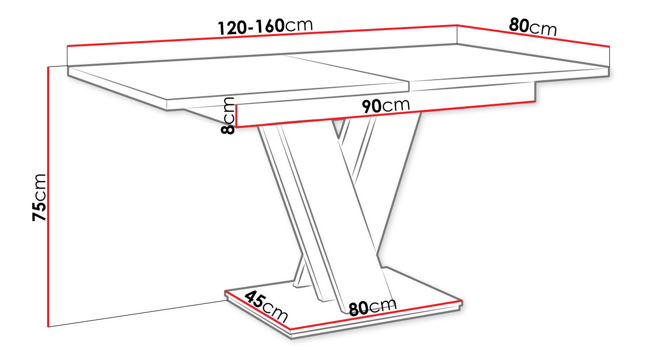 ZobrazitPotřebujete moderní stůl do jídelny nebo obývacího pokoje? Navrhujeme model Hildaria. Charakteristickým prvkem stolu je podstavec navržený ve tvaru písmene "V", který dotváří moderní styl nábytku. Minimalistický a geometrický tvar stolu dokonale odpovídá současným trendům v interiérovém designu. Stůl je navíc vyroben z kvalitních komponentů. Šířka desky stolu před rozložením je 120 cm, po rozložení až 160 cm. Pro 100% stabilitu je stůl navíc vybaven dvěma výškově nastavitelnými nožičkami.
