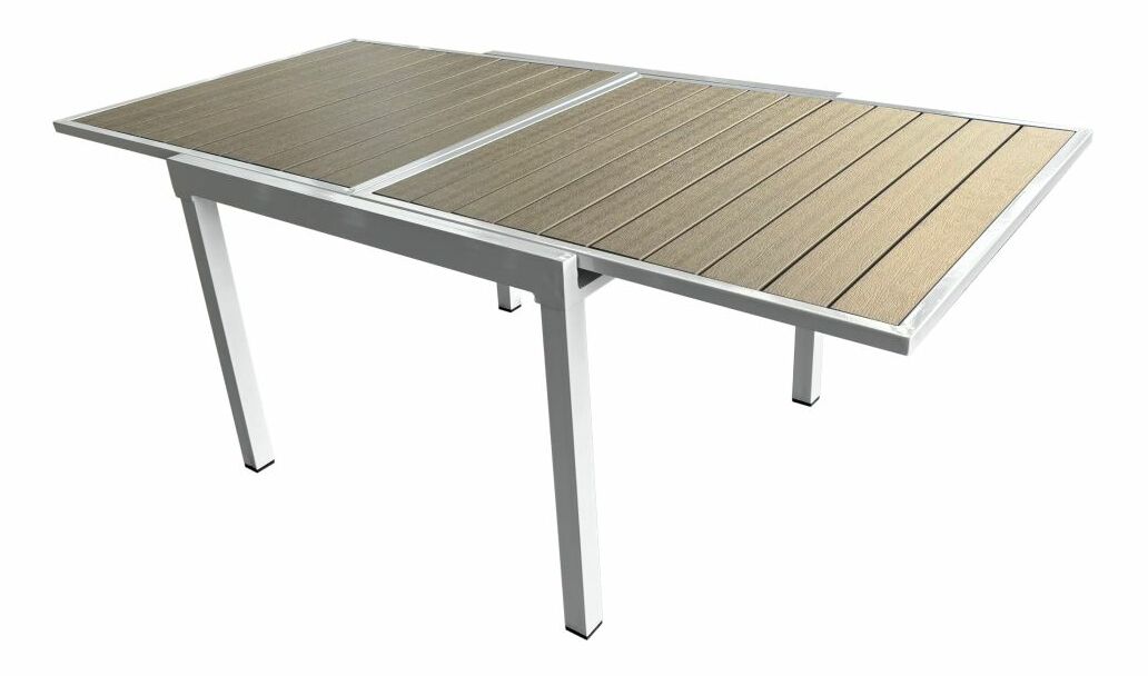 Rozkládací zahradní stůl DARIO (bílá ocel + šedá) (pro 4-8 osob)