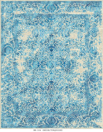 Ručně vázaný koberec Bakero Versailles prírodný hodváb Mb-304 Beige-Turquoise