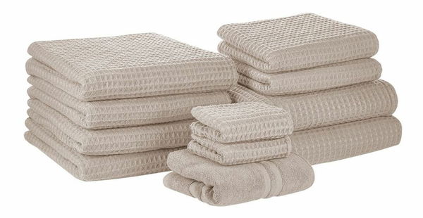 Tato sada vaflových ručníků se stane vaší oblíbenou v okamžiku, kdy ji použijete. Jejich struktura jim dodává luxusní vzhled, což z nich činí ideální ručníky pro hosty. Ručníky jsou velmi měkké a hřejivé, a to díky takzvanému nulovému kroucení (zero twist) a hustým vláknům. Díky své textuře rychle odvádějí vlhkost z pokožky a rychle se vysuší. Sada obsahuje ručníky pro hosty, ručníky na ruce, osušky, velké osušky a předložku do koupelny.
