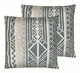 Použití těchto polštářů v prostoru je snadný způsob, jak změnit vzhled interiéru bez přílišného úsilí. Tato sada se může pochlubit originálním designem s geometrickým vzorem a úzkým ozdobným lemem. Odnímatelné potahy jsou vyrobeny z odolné polyesterové textilie a lze je snadno sejmout na čištění.