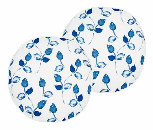 Tato nádherná sada dvou vzorovaných polštářů navodí uvolněnou a relaxační atmosféru v jakémkoli vnějším prostředí. Kulaté dekorativní polštáře, které jsou ozdobeny osvěžujícím vzorem modrých lístků na bílém pozadí, mají voděodolné potahy, takže do vašeho venkovního prostoru vnesou kromě stylu také dávku funkčnosti.