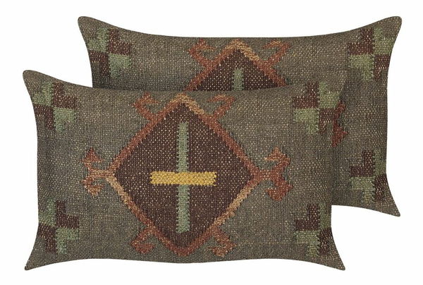 Tyto polštáře, vytvořené pomocí techniky zvané panja, jsou dílem řemeslníků, kteří pomocí ručního nářadí pečlivě utkají originální potah, díky čemuž je každý kus jedinečný. Polštáře jsou vyrobeny ze směsi juty a vlny a mají hrubou polyesterovou výplň. Orientální vzor v zemitých odstínech vytváří design, který výborně doplní interiéry zařízené v boho a vintage stylu. Jsou dokonalým dekorativním doplňkem jakékoli pohovky nebo postele.