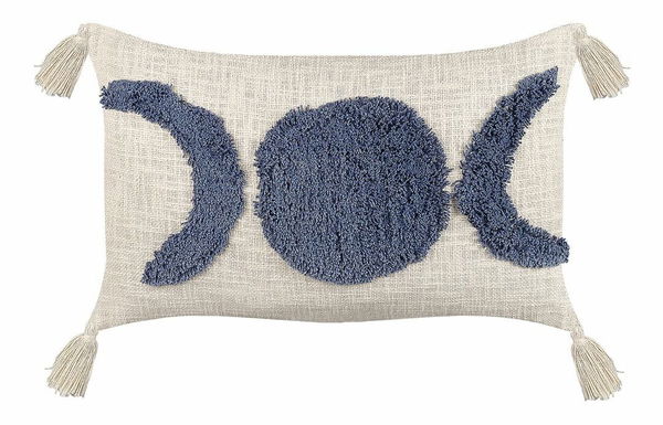 Tento dekorativní polštář se vzorem v modré barvě učiní z každého interiéru útulný a příjemný prostor. Texturovaný vzor a třásně na rozích mu dodávají vintage nádech, díky čemuž je vhodným doplňkem do místností v boho nebo retro stylu. Díky obdélníkovému tvaru bude vypadat fantasticky, pokud jím doplníte čelo postele. Tento stylový a praktický polštář se stane okouzlujícím doplňkem každé domácnosti.