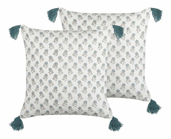 Tyto polštáře vnesou do vašeho interiéru nádech romantického stylu. Jejich bavlněné povlečení s třásněmi je ručně zdobeno technikou blokového tisku. Díky měkké polyesterové výplni jsou ideální pro odpolední spánek.