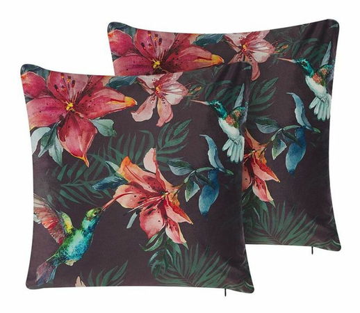 Vneste do svého domova tropickou atmosféru s těmito poutavými polštáři. Souprava se vzorem květin v zářivých barvách jistě vylepší vzhled vašeho obývacího pokoje. Povlaky na polštáře jsou vyrobeny z odolného a na dotek příjemného sametového materiálu. Každý kus je dodáván s měkkou výplní a skrytým zipem pro snadné čištění.