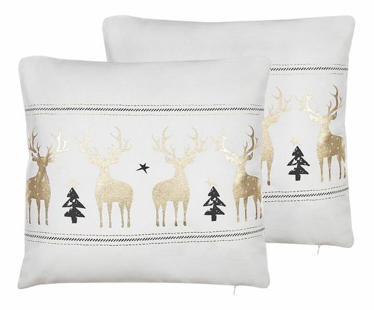 Vneste do vašeho domova sváteční atmosféru pomocí těchto krásných polštářů. Jejich odolné potahy jsou vyrobeny z kvalitní bavlny v neutrální bílé barvě.