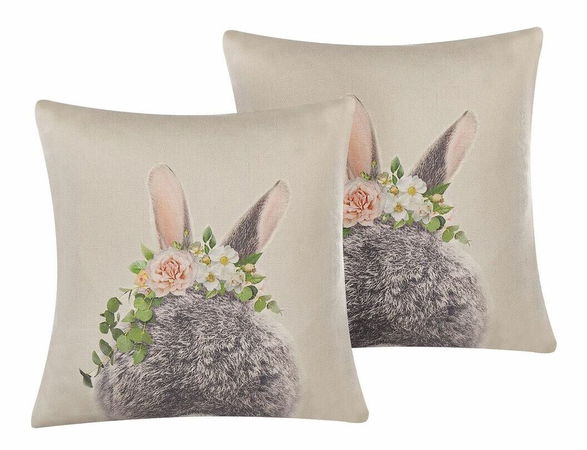 Tato sada dvou polštářů bude nádherným zpestřením velikonoční výzdoby a bez problémů zapadne do každého interiéru. Polštáře jsou vyrobeny z vysoce kvalitní bavlny v neutrálních barvách a jsou opatřeny zipem, který usnadňuje jejich čištění. Zdobí je rozkošný potisk zajíčků, díky kterému nádherně vyniknou v jakémkoli prostoru.