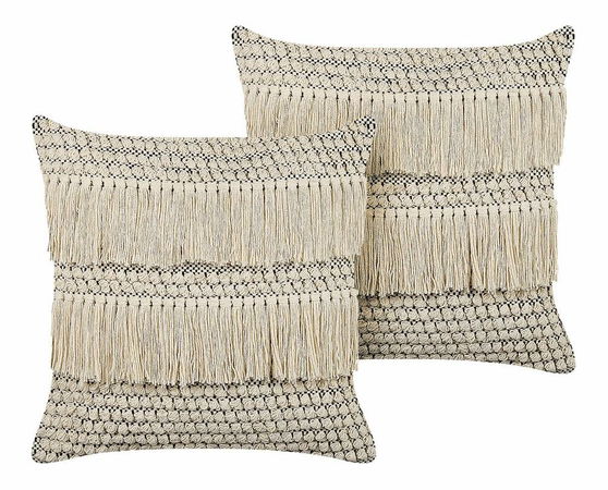 Praktické a stylové dekorativní polštáře v béžovém provedení jsou doplňkem, který nesmí chybět v žádném moderním interiéru. Umístěte je na pohovku nebo na postel a užívejte si jedinečný komfort a nádherný boho design polštářů. Potahy jsou ručně vyrobeny ze 100% bavlny a na přední straně mají ozdobné třásně. Díky praktickému zipu je lze snadno sejmout a vyčistit.