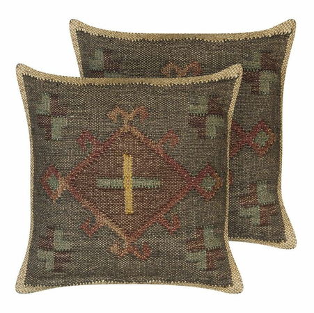 Tyto polštáře, vytvořené pomocí techniky zvané panja, jsou dílem řemeslníků, kteří pomocí ručního nářadí pečlivě utkají originální potah, díky čemuž je každý kus jedinečný. Polštáře jsou vyrobeny ze směsi juty a vlny a mají hrubou polyesterovou výplň. Orientální vzor v zemitých odstínech vytváří design, který výborně doplní interiéry zařízené v boho a vintage stylu. Jsou dokonalým dekorativním doplňkem jakékoli pohovky nebo postele.