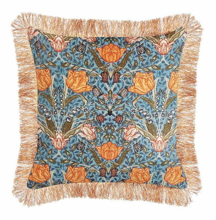 Takový barevný polštář okamžitě oživí jakýkoli prostor. Krásný motiv květin zvýrazňují ozdobné třásně po celém obvodu. Díky svému designu se stane ozdobou jakékoli postele nebo pohovky v neutrálním odstínu. Povlak je vyroben z kvalitní bavlny a její přední část má jemnou sametovou texturu.