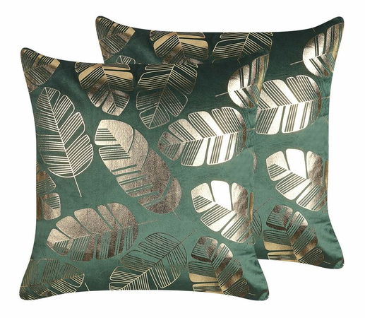 Vylepšete vzhled svého interiéru touto úžasnou sadou sametových polštářů. Oba polštáře mají zlatý potisk se vzorem listů a výborně doplní jakékoli křeslo, pohovku nebo postel. Sytá zelená barva nádherně ladí se zlatým potiskem a oživí každý interiér v moderním nebo elegantním stylu.